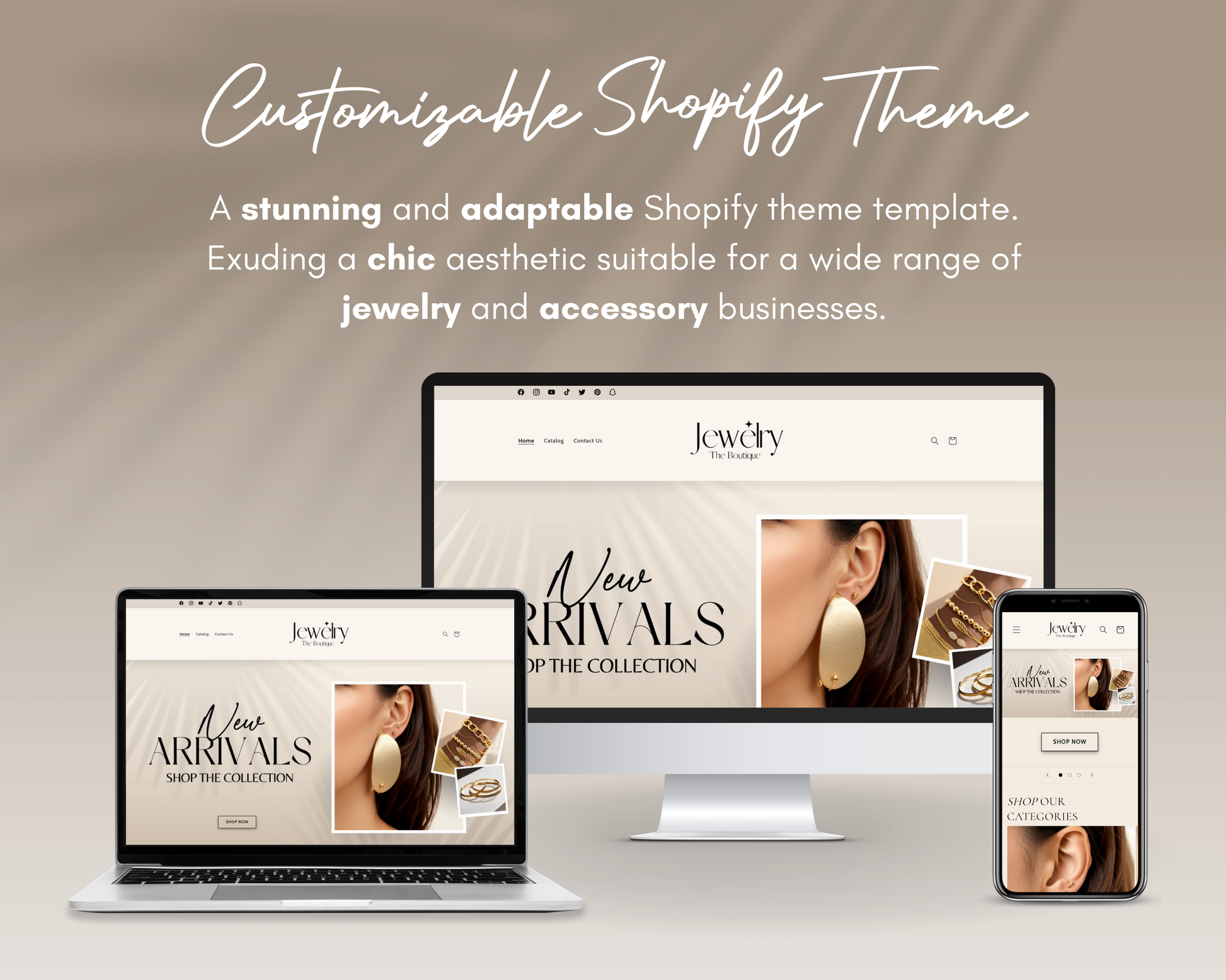 With a sophisticated design, our Shopify template is adaptable for many types of jewelry and accessory businesses. Whether you're starting a new business, expanding your online presence, or simply looking to upgrade your current site, our template is here to transform your digital presence into a masterpiece.
