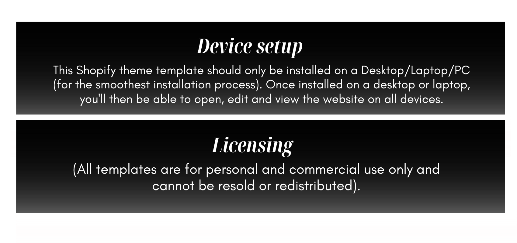 NOTE: BeverlyTemplates themes cannot be updated once installed. BeverlyTemplates themes can not be updated like Shopify’s Dawn theme. You will however be able to go in and edit/alter the themes layout/style and coding.