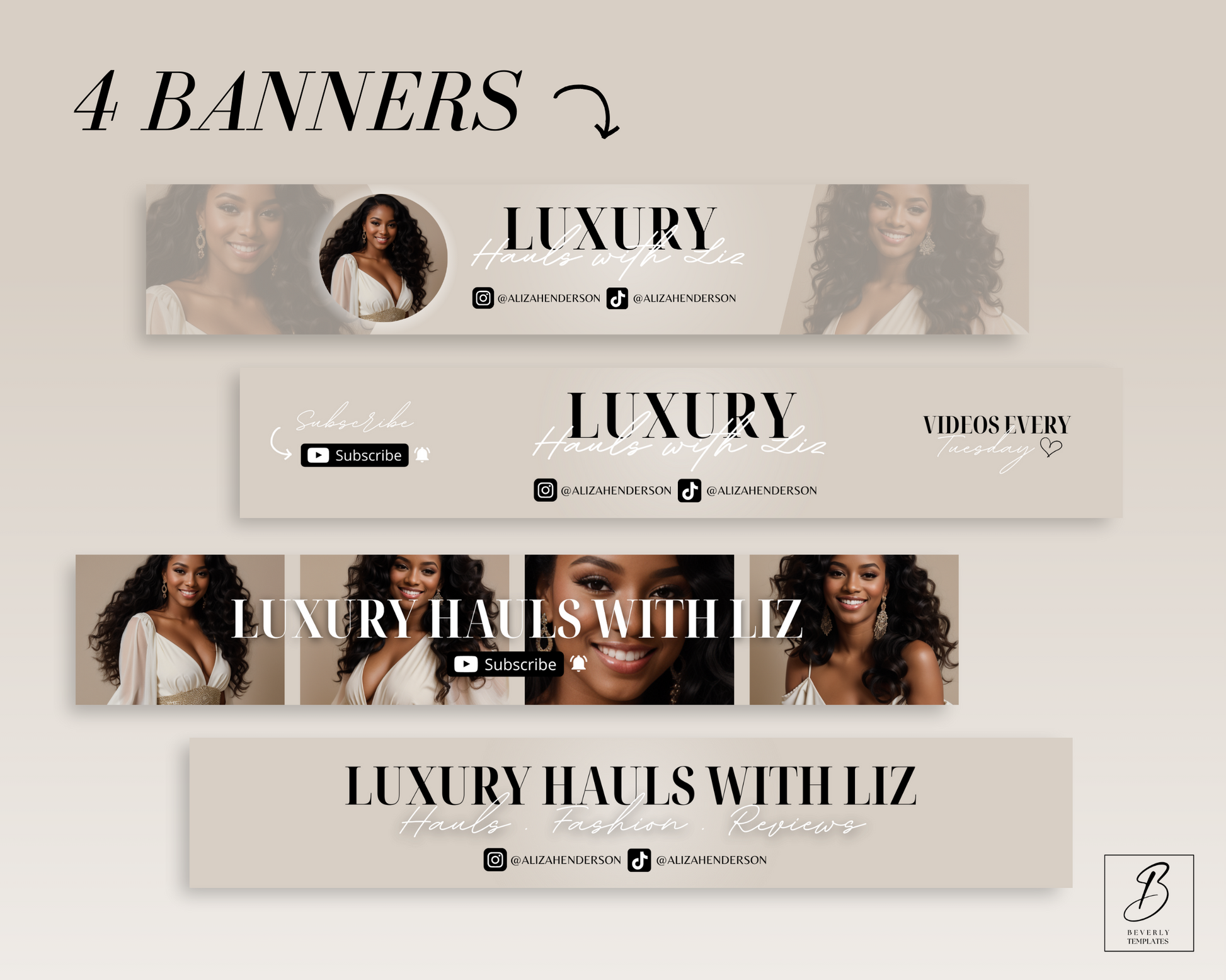 Enhance your YouTube channel with an editable branding kit. Attract subscribers, viewers and build an appealing YouTube channel that represents your style.